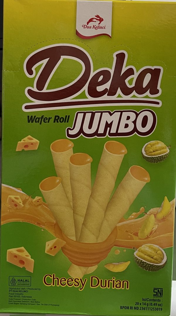 Previous Product Next Product Deka Wafer Roll Jumbo Chessy Durian¥630.00 Deka Wafer Roll Jumbo Chessy Durian quantity Add to cart Categories: Indonesian Products, Makanan Jadi, Ready To Serve, Snack (Cemilan) Description Reviews (0) Description Reviews There are no reviews yet. Be the first to review “Deka Wafer Roll Jumbo Chessy Durian” Cancel replyYou must be logged in to post a review. Related products Quick View Quick View Ready To Serve, Thai ProductsJack Fruit in Syrup (Nangka manis) ¥420.00 Add to cart Quick View Out of Stock Quick View Indonesian Products, Ready To Serve, Snack (Cemilan)Beng Beng coklat ¥135.00 Read more Quick View Quick View Beverages, Ready To Serve, Thai ProductsJus cincau hitam (grass jelly drink) ¥170.00 Add to cart